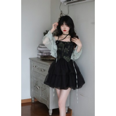 Spring and summer NEW dark department of sweet hot wind sling skirt organza skirt cold French dress female